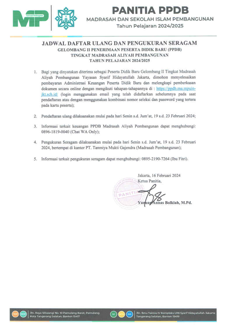 Pendaftaran dibuka 23 Oktober 2025 dilanjutkan dengan proses daftar ulang,
